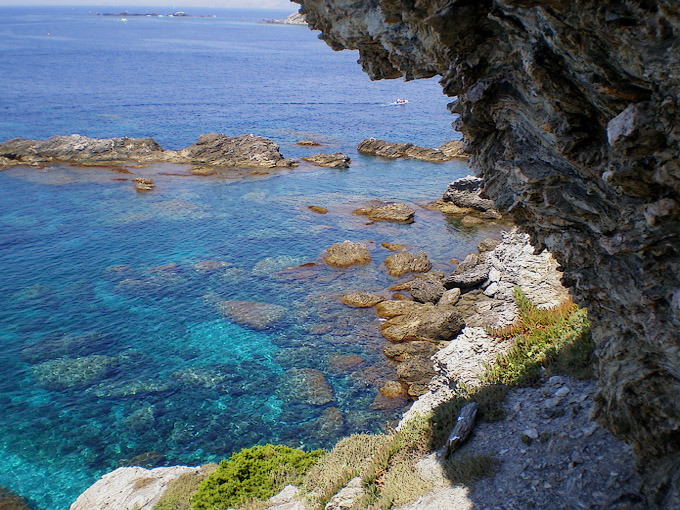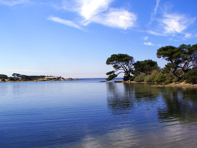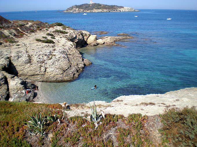 kleinen Buchten, ebenso wie das Inselinnere mit dem hohen Pinienwald.