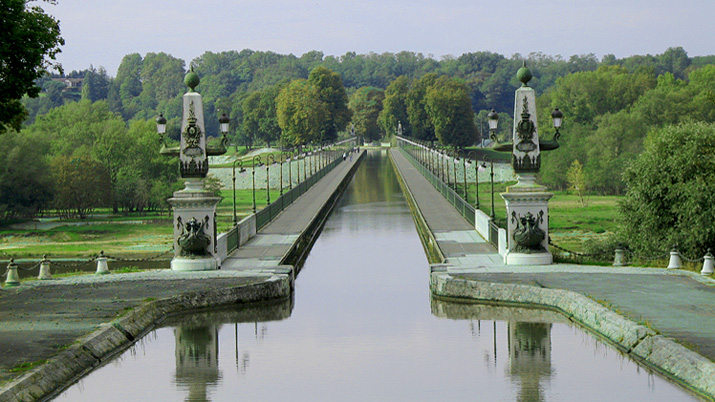 Aufbruch heute morgen bei lausiger Kälte. Ich radle verhalten, mit geringster Leistung, um nur ja nicht ins Schwitzen zu kommen. Nasse Kleidung und kalter Wind sind das letzte was ich heute ertragen kann. So um die Mittagszeit klart es etwas auf, die Sonne lässt sich hin und wieder blicken. Es bleibt kalt.In Briar treffe ich zum ersten mal auf die Loire und zugleich auf eine kleine Sehenswürdigkeit, den Pont-Canal, die Kanalbrücke von Briare. Die Brücke ermöglicht dem Loire-Lateral-Kanal die Überquerung der Loire. Es handelt sich also um eine Brücke, die eine schiffbare Wasserstraße trägt. Sie wurde im Jahre 1896 eingeweiht und gilt mit ihren 662 Metern als die längste metallische Kanalbrücke der Welt*). Erbaut wurde sie nach einer Konzeption der Ingenieure Léonce-Abel Mazoyer und Charles Sigault. Für die Betonarbeiten war übrigens ein gewisser Gustave Eiffel zuständig.
